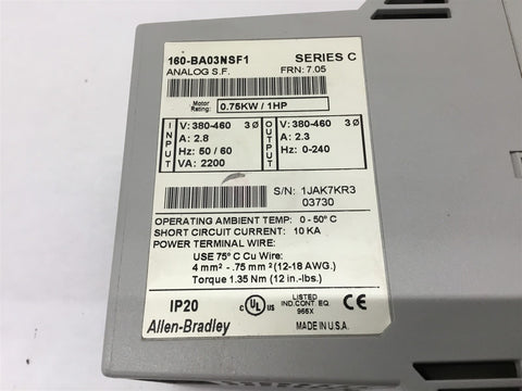 Allen-Bradley 160-BA03NSF1 0.75KW/1HP Speed Controller