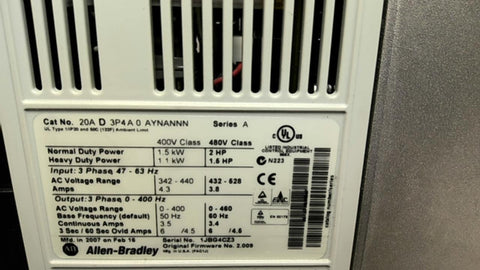 Allen Bradley 20AD3P4A0AYNANNN PowerFlex 70 Series A Drive 2 HP Return Policy Returns accepted within 30 days. Items sold as is cannot be returned, unless description is in error. Buyer pays return freight. Shipping Policy We ship almost all items with 1 business day of cleared payment. We ship USPS and UPS. We can ship on your account. If you will be shipping freight, please be sure to provide all delivery contact information including a phone number. We will need to know if you have a fork lift or dock.