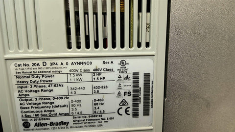 Allen Bradley 20AD3P4A0AYNNNC0 PowerFlex 70 Drive 2 Hp 460 volts Return Policy Returns accepted within 30 days. Items sold as is cannot be returned, unless description is in error. Buyer pays return freight. Shipping Policy We ship almost all items with 1 business day of cleared payment. We ship USPS and UPS. We can ship on your account. If you will be shipping freight, please be sure to provide all delivery contact information including a phone number. We will need to know if you have a fork lift or dock.