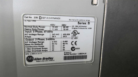 Allen-Bradley 20BD027A0AYNAND0 Power Flex 700 20 HP Drive 480 Vac 27 Amps 3 Ph