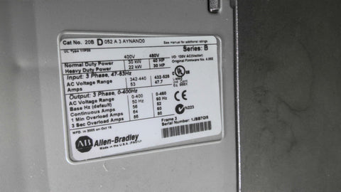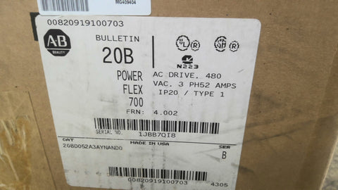 Allen-Bradley 20BD052A3AYNAND0 Power Flex 40 HP Drive 480 Vac 52 Amps