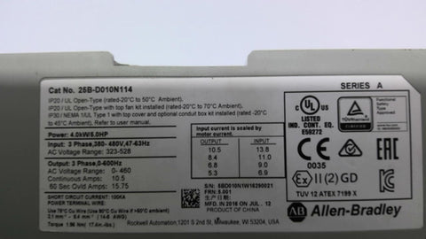 Allen Bradley 25B-D010N114 PowerFlex 525 5 HP 380-480 Volts 3 Phase