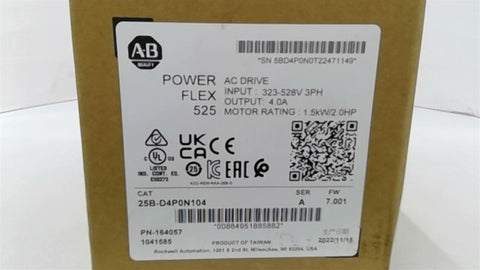 Allen Bradley 25B-D4P0N104 PowerFlex 525 AC Drive 2 HP 4 Amp