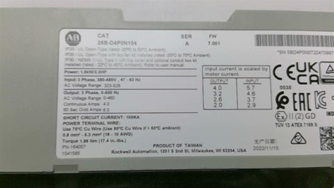 Allen Bradley 25B-D4P0N104 PowerFlex 525 AC Drive 460 Volt 2 HP