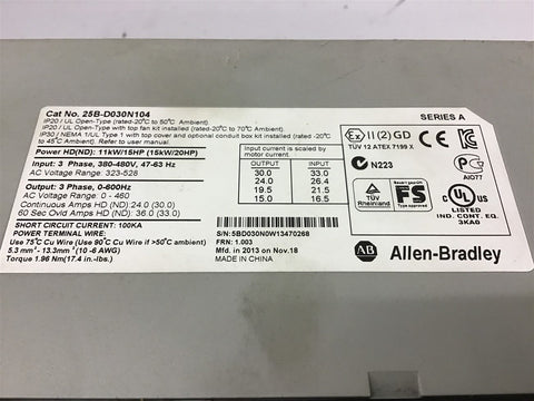 Allen Bradley PowerFlex 525 25B-D030N104 AC Drive 15 HP 380/480 VAC 3 Phase