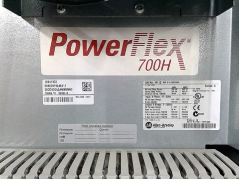 Allen Bradley PowerFlex 700H 20CD500A3ANNBNN0 Inverter Drive 480V 450Hp 3ph Return Policy Returns accepted within 30 days. Items sold as is cannot be returned, unless description is in error. Buyer pays return freight. Shipping Policy We ship almost all items with 1 business day of cleared payment. We ship USPS and UPS. We can ship on your account. If you will be shipping freight, please be sure to provide all delivery contact information including a phone number. We will need to know if you have a fork lift or dock.