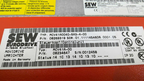 SEW Eurodrive MCV41A0040-5A3-4-00 Movidrive MCV41A-00