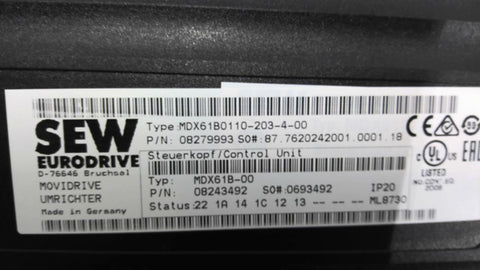 300-500 Volt 0-500 HZ-W/ SEW MDX61B0110-203-4-00 Inverter 3 Phase 200-240 Volt 50/60 Hz 40 A-Used--Good Visual Condition--6-25--JLV