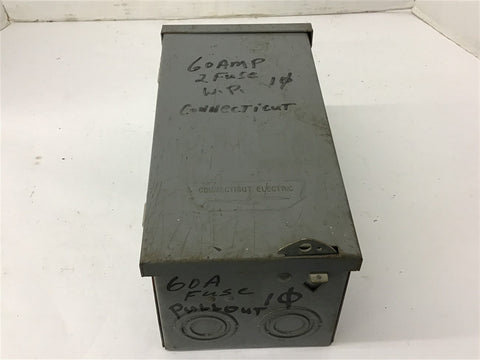 Connecticut Electric 06000 60 Amp 240 Vac Enclosure Return Policy Returns accepted within 30 days. Items sold as is cannot be returned, unless description is in error. Buyer pays return freight. Shipping Policy We ship almost all items with 1 business day of cleared payment. We ship USPS and UPS. We can ship on your account. If you will be shipping freight, please be sure to provide all delivery contact information including a phone number. We will need to know if you have a fork lift or dock.