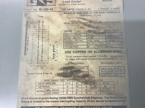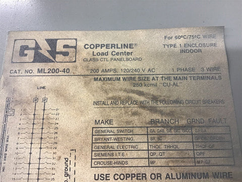 Copperline ML200-40 Load Center 200 Amps 120/240 VAC 1 Phase Type 1 Enclosure Return Policy Returns accepted within 30 days. Items sold as is cannot be returned, unless description is in error. Buyer pays return freight. Shipping Policy We ship almost all items with 1 business day of cleared payment. We ship USPS and UPS. We can ship on your account. If you will be shipping freight, please be sure to provide all delivery contact information including a phone number. We will need to know if you have a fork lift or dock.