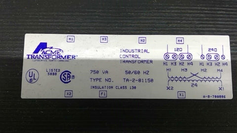 ACME TA-2-8-1150 Industrial Control Transformer 750VA 50/60HZ