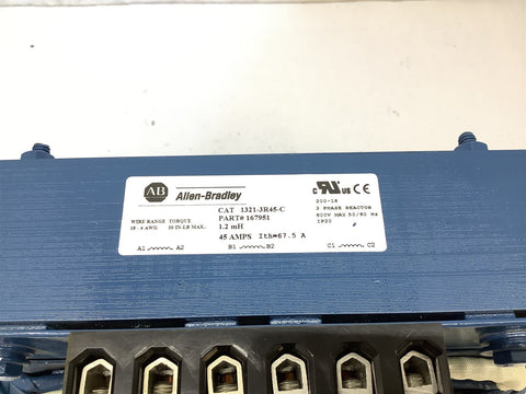 Allen-BRADLEY 1321-3R45-C 3 Phase Line Reactor 45 Amp 600 Volts Return Policy Returns accepted within 30 days. Items sold as is cannot be returned, unless description is in error. Buyer pays return freight. Shipping Policy We ship almost all items with 1 business day of cleared payment. We ship USPS and UPS. We can ship on your account. If you will be shipping freight, please be sure to provide all delivery contact information including a phone number. We will need to know if you have a fork lift or dock.