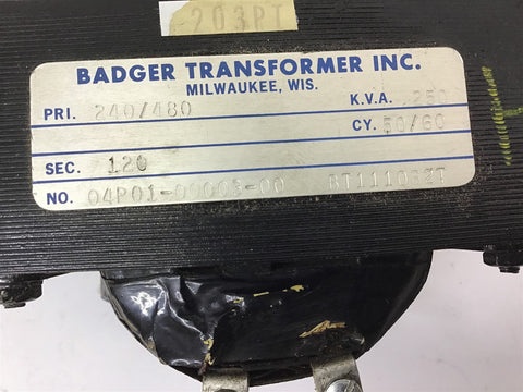 Badger Transformer Inc. BT111062T Transformer 240/480 V 0.250 kVA Return Policy Returns accepted within 30 days. Items sold as is cannot be returned, unless description is in error. Buyer pays return freight. Shipping Policy We ship almost all items with 1 business day of cleared payment. We ship USPS and UPS. We can ship on your account. If you will be shipping freight, please be sure to provide all delivery contact information including a phone number. We will need to know if you have a fork lift or dock.