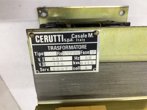 Cerutti 65730 Transformer 480 Pri 170 Sec Volt 0114 kVA Return Policy Returns accepted within 30 days. Items sold as is cannot be returned, unless description is in error. Buyer pays return freight. Shipping Policy We ship almost all items with 1 business day of cleared payment. We ship USPS and UPS. We can ship on your account. If you will be shipping freight, please be sure to provide all delivery contact information including a phone number. We will need to know if you have a fork lift or dock.