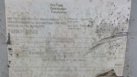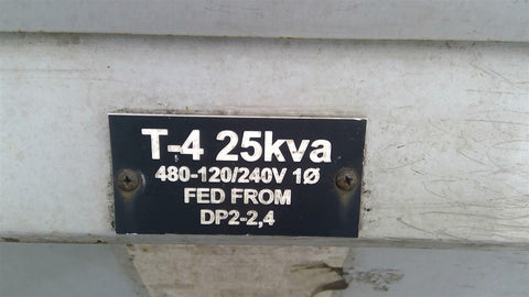 Eaton T48M11S25EE 25 KVA Transformer 480V Pri 120/240 Sec Single Phase