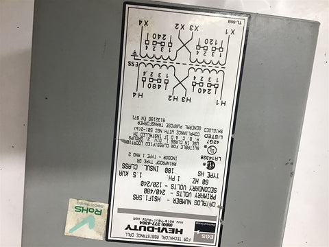 EGS HS1F1.5AS Hevi Duty Shielded General Purpose Transformer 1.5 KVA 60 Hz Return Policy Returns accepted within 30 days. Items sold as is cannot be returned, unless description is in error. Buyer pays return freight. Shipping Policy We ship almost all items with 1 business day of cleared payment. We ship USPS and UPS. We can ship on your account. If you will be shipping freight, please be sure to provide all delivery contact information including a phone number. We will need to know if you have a fork lift or dock.