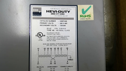 EGS HS5F3AS 3kVa Primary 240/480v Secondary 120/240v Single Phase