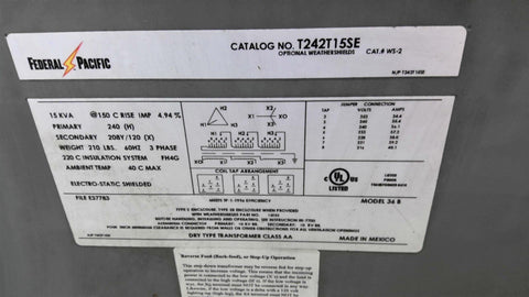 Federal Pacific T242T15SE 15kVa Transformer PRI 240V SEC 208/120V 3 Phase