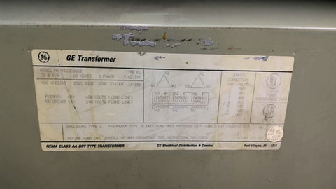 GE 9T23B3882 30KVA Transformer 480V Primary 240V Secondary 3Phase Return Policy Returns accepted within 30 days. Items sold as is cannot be returned, unless description is in error. Buyer pays return freight. Shipping Policy We ship almost all items with 1 business day of cleared payment. We ship USPS and UPS. We can ship on your account. If you will be shipping freight, please be sure to provide all delivery contact information including a phone number. We will need to know if you have a fork lift or dock.