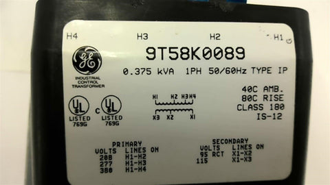 GE 9T58K0089 0.375KVA Transformer Single Phase 50/60HZ 208 277 380 Pri 115 Sec