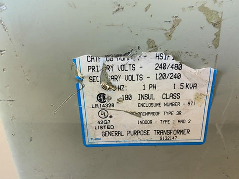 Hevi-Duty 1.5 KVA Transformer 240/480V Pri 120/240V Sec Single Phase