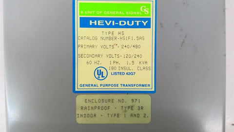 Hevi-Duty HS1F1-SAS 1.5kVa Transformer PRI-240/480v SEC 120/240v Single Phase