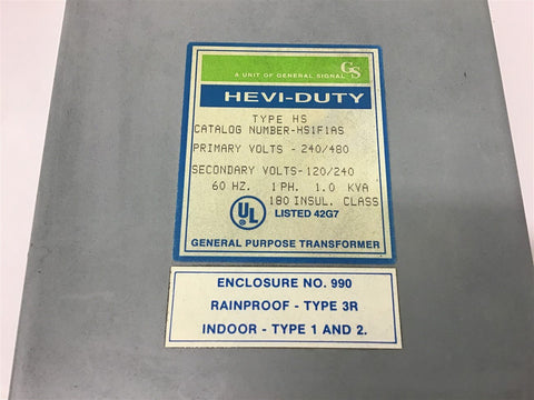 Hevi-Duty HS1FAS 1 KVA Single Phase Transformer 240/480 Pri 120/240 Sec