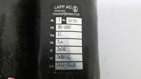 LAPP AG 2454-114.01 Single Phase Transformer 124 VA 2x110 Pri 2x18/0.5 Sec