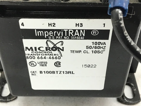 Micron B100BTZ13RL Control Transformer 100 VA Return Policy Returns accepted within 30 days. Items sold as is cannot be returned, unless description is in error. Buyer pays return freight. Shipping Policy We ship almost all items with 1 business day of cleared payment. We ship USPS and UPS. We can ship on your account. If you will be shipping freight, please be sure to provide all delivery contact information including a phone number. We will need to know if you have a fork lift or dock.