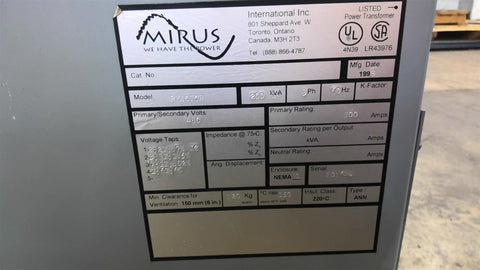 Mirus 200 kVa Reactor Power Transformer 480 PRI 480 SEC Volts 3 Phase