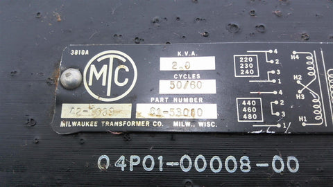 MTC C1-53080 2 KVA Transformer 220-240/440-480 Pri V 110-120 Sec V