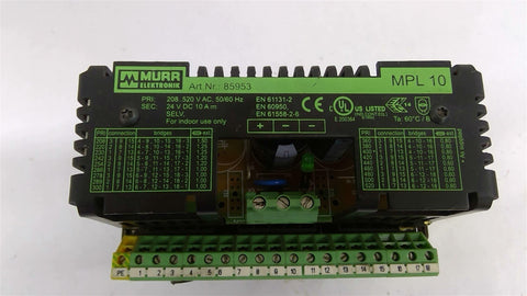 Murr Electronik MPL10 85953 208..520 V AC 50-60HZ 24V DC 10A Return Policy Returns accepted within 30 days. Items sold as is cannot be returned, unless description is in error. Buyer pays return freight. Shipping Policy We ship almost all items with 1 business day of cleared payment. We ship USPS and UPS. We can ship on your account. If you will be shipping freight, please be sure to provide all delivery contact information including a phone number. We will need to know if you have a fork lift or dock.