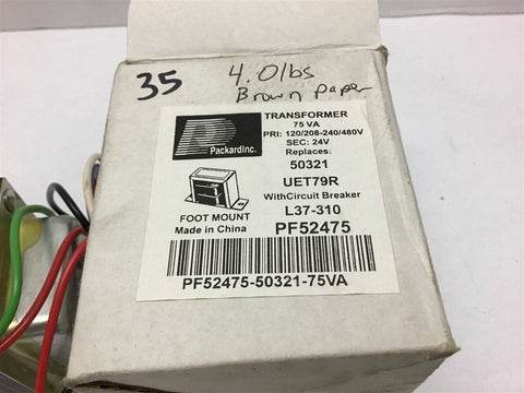Packard PF52475 75 VA Transformer 120/208-240/480 V Pri 24v Sec Return Policy Returns accepted within 30 days. Items sold as is cannot be returned, unless description is in error. Buyer pays return freight. Shipping Policy We ship almost all items with 1 business day of cleared payment. We ship USPS and UPS. We can ship on your account. If you will be shipping freight, please be sure to provide all delivery contact information including a phone number. We will need to know if you have a fork lift or dock.