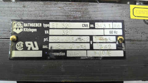 Rathgeber ET 320 Transformer 320VA 488-465-442 Pri 42-40-38 Sec