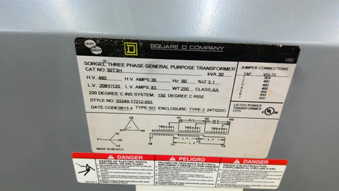 Square D 30T3H 30 KVA Transformer 480 Pri V 208/120 Sec V 3 Phase