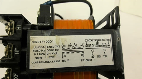 Square D 9070TF10D1 Transformer 0.1 KVA 240 480 Pri 110 120 Sec Return Policy Returns accepted within 30 days. Items sold as is cannot be returned, unless description is in error. Buyer pays return freight. Shipping Policy We ship almost all items with 1 business day of cleared payment. We ship USPS and UPS. We can ship on your account. If you will be shipping freight, please be sure to provide all delivery contact information including a phone number. We will need to know if you have a fork lift or dock.