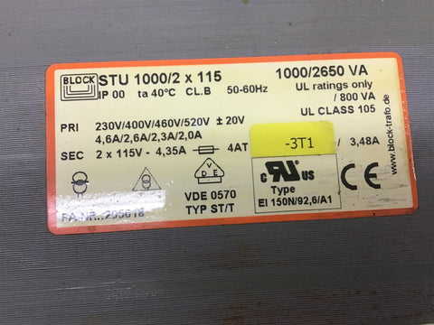 Stu 1000/2 X 115 1000/2650 VA Transformer 230/460 V Pri 2 x 115 V Sec Return Policy Returns accepted within 30 days. Items sold as is cannot be returned, unless description is in error. Buyer pays return freight. Shipping Policy We ship almost all items with 1 business day of cleared payment. We ship USPS and UPS. We can ship on your account. If you will be shipping freight, please be sure to provide all delivery contact information including a phone number. We will need to know if you have a fork lift or dock.