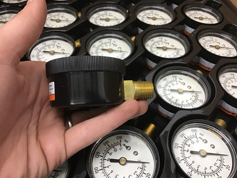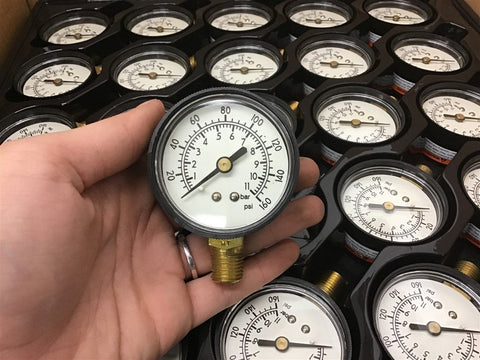 0-160 PSI Pressure Gauge 1/4" Brass NPT Male Port 2" Face 125 gauges Return Policy Returns accepted within 30 days. Items sold as is cannot be returned, unless description is in error. Buyer pays return freight. Shipping Policy We ship almost all items with 1 business day of cleared payment. We ship USPS and UPS. We can ship on your account. If you will be shipping freight, please be sure to provide all delivery contact information including a phone number. We will need to know if you have a fork lift or dock.