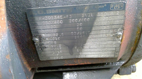 A.O.Smith E437 20HP AC Motor 3600RPM 2P 3PH 256T 230/460-200V EF 60HZ[[Description]]CC 156703---SS283--S2-4-1-4-B---230.00