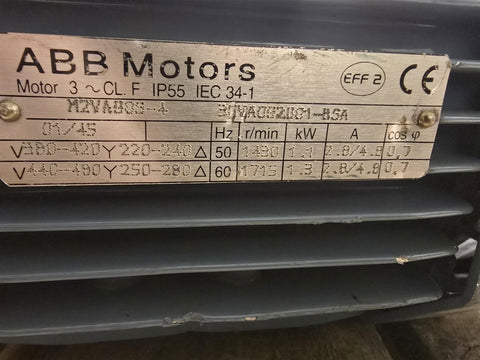 ABB M2VAB3S-4 1.3kW AC Motor 1800RPM 4P 3PH 250/280-440/480V TEFC 60HZ [[Description]]BV 159293---SS283--W-6-5-4-A---65.00