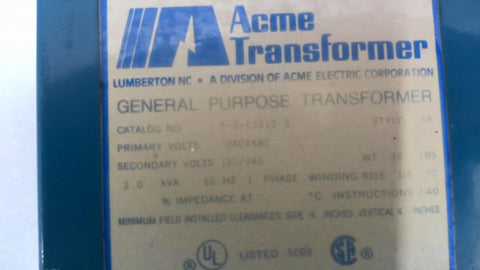 Acme T-2-53012-S 2.0 KVA Transformer 240-480 Volt 120-240 Volt 1 Phase 60 Hz