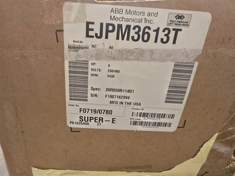Baldor EJPM3613T 5HP AC Motor 3600RPM 2P 3PH 184JP 230/460V TEFC 60Hz[[Description]]BV 158994---SS284-W-5-3-2-B---90.00