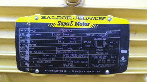 Baldor EM4103T 25HP AC Motor 1800RPM 4P 3PH 284T 230/460V TEFC 60HZ [[Description]]CC 156807---SS280--S1-7-1-2-A---450.00