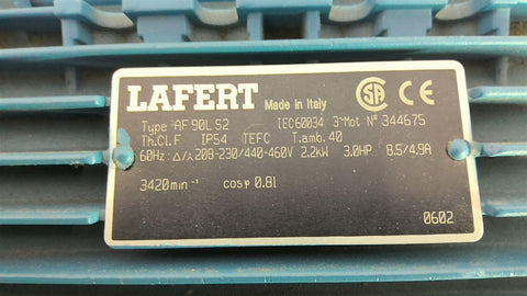 Lafert AF 90L S2 3hp AC Motor TEFC 60hz 3420 Rpm [[Description]]CC 156873---SS283 R1-6-1-4-B---70.00
