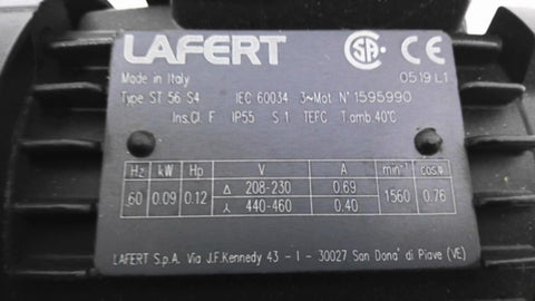 Lafert ST56S4 0.12 HP AC Motor 1560 RPM 4 Pole 3 Phase IP55 208-230 460 VAC TEFC