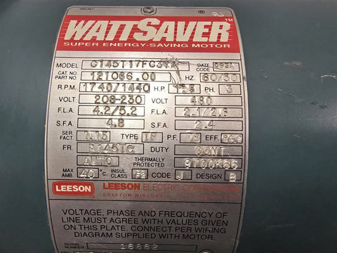 Leeson 121066.00 1.5HP AC Motor 1800RPM 4P 3PH E143TC 208-230/460V TEFC 60Hz