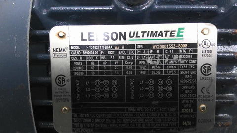 Leeson B199004.00 3 HP AC Motor 1800 RPM 4P 3 Phase 182T 230/460 V TEFC 60 HZ