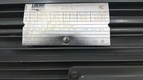 Lincoln LM15662 20 HP AC Motor 1800 RPM 4 P 3PH 256T 208-230/460 V TEFC 60 HZ