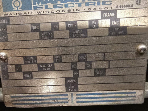 Marathon 2N 404TTFS7253ANW 60HP AC Motor 1800RPM 4P 3PH 404T 460V TEFC 60HZ