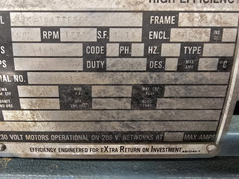 Marathon 2VK364TTFS6536ANW 60HP AC Motor 1800RPM 4P 3PH 364T 460V TEFC 60HZ
